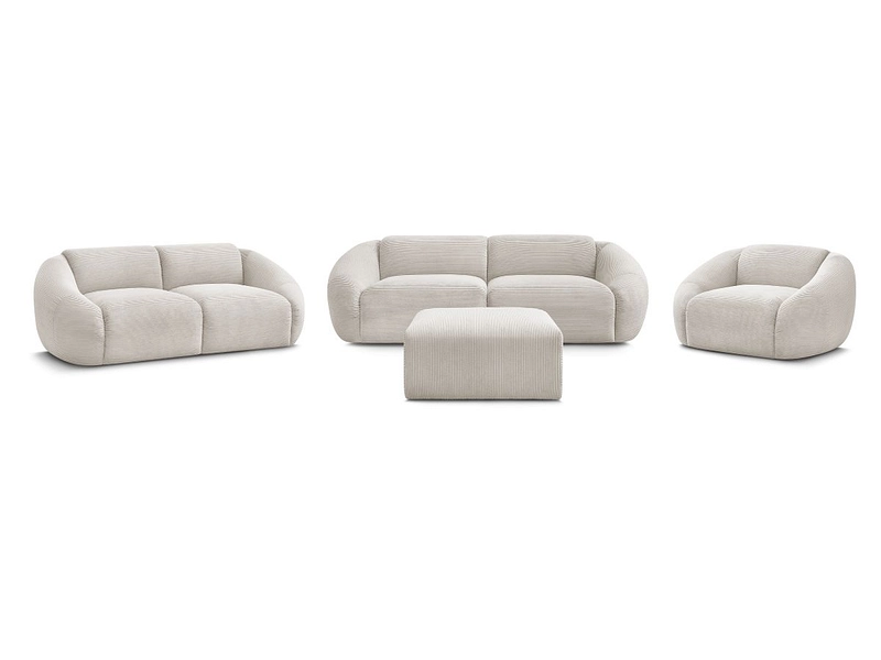 - Die Kombination aus zwei Sofas, einem Sessel und einem Hocker ist ideal, um ein komplettes Wohnzimmer einzurichten