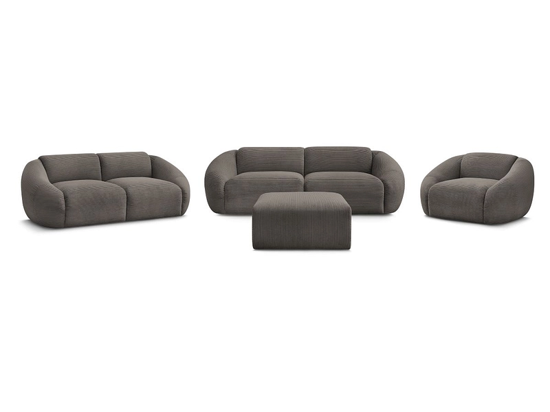 • Die Kombination aus zwei Sofas, einem Sessel und einem Hocker ist ideal, um ein komplettes Wohnzimmer einzurichten