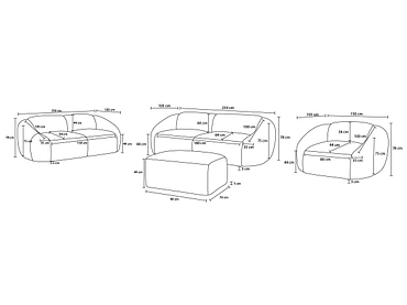 • Die Kombination aus zwei Sofas, einem Sessel und einem Hocker ist ideal, um ein komplettes Wohnzimmer einzurichten