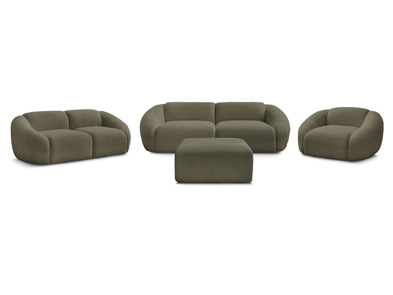 • Die Kombination aus zwei Sofas, einem Sessel und einem Hocker ist ideal, um ein komplettes Wohnzimmer einzurichten