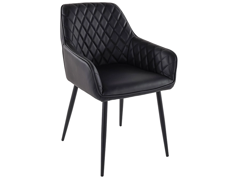 Der Stuhl MANHATTAN aus schwarzem Echtleder veredelt deine Einrichtung. Seine Sitzfläche aus echtem Leder bietet überragenden Komfort, während sein Sperrholzgestell für dauerhafte Robustheit sorgt. Das Rautenmuster verleiht dem Stuhl einen Hauch von dezenter Eleganz. Genieße den Komfort der festen Armlehnen und die Stabilität der vier Beine. Die Schaumstoffpolsterung trägt wesentlich zu deinem Wohlbefinden bei. Dieser Stuhl trägt ein maximales Gewicht von 140 kg. Sein modernes Design wird sich perfekt in dein Wohnzimmer einfügen. Er ist in weiteren Farben erhältlich, um ihn an deine Vorlieben anzupassen, und du kannst ihn ganz einfach zu Hause zusammenbauen. Genieße eine qualitativ hochwertige Sitzfläche und einen einzigartigen Stil.