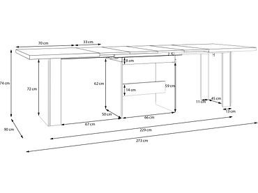 Tisch ausziehbar MOLVIA 140-173-206-239x90x74.5cm eiche