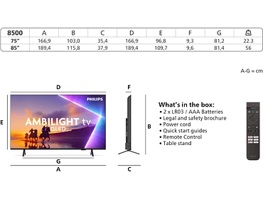 - Vollständiges Eintauchen mit Ambilight, Dolby Atmos, DTS:X, Titan OS, Matter-Kompatibilität und nachhaltigem Design – für ein starkes, vernetztes und umweltbewusstes Fernseherlebnis.
