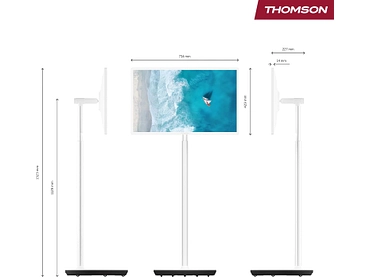 - LED-Fernseher THOMSON 32HA4M44 2024 - 80 cm (32), mit einer Auflösung von 1366 x 768 Pixeln, LED-Technologie zur Senkung des Energieverbrauchs und HDR-Kompatibilität zur Verbesserung der Bilddetails durch Dynamisierung von Kontrasten und Farben, in einem schlichten Design in Weiß mit Standfuß auf Rollen.