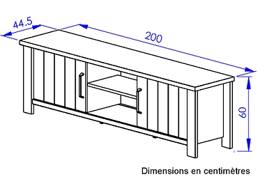 - Länge 200 cm, ideal für die neuesten Generationen großer FernseherMittige offene Nischen zur Aufnahme aller Audio-/Hifi-GeräteGriffe aus Aluminium mit gebürstetem Nickel-FinishMöbel hergestellt in Frankreich.