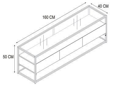 Das TV-Möbel INDUSTRY 160cm Holz ist ideal für dein Wohnzimmer. Sein Design kombiniert Holz und schwarzes Metall für einen ausgeprägten industriellen Stil. Es bietet optimalen Stauraum dank seiner praktischen Schubladen, die jeweils 44,5x33x11,2 cm gross sind und sich perfekt für die Organisation deiner Sachen eignen. Hergestellt aus robusten Spanplatten und mit gehärtetem Glas ausgestattet, ist dieses Möbelstück für eine lange Lebensdauer konzipiert. Seine Breite von 160 cm bietet viel Platz für deinen Bildschirm und andere Multimediageräte. Sein Unisex-Look und seine sorgfältige Verarbeitung machen ihn zu einem charmanten Blickfang in deiner Wohnung. Es wird deinen Wohnraum verschönern.