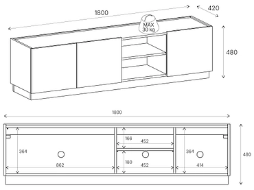 Entdecke das TV-Möbel DIONA MARCKERIC 180cm Eiche, ein modernes Möbelstück, das deinem Wohnzimmer eine warme Note verleihen wird. Mit seiner eichenfarbenen und cremefarbenen Melaminbeschichtung passt es perfekt in dein Zuhause. Seine Länge von 180cm ist ideal, um einen grossen Bildschirm bis zu 75 Zoll unterzubringen. Nutze seinen praktischen Stauraum und optimiere deinen Platz. Die Klappöffnung ermöglicht dir einen einfachen Zugriff auf deine Geräte. Eine integrierte Kabeldurchführung sorgt für eine saubere und diskrete Installation deiner Geräte. Seine zentrale Fussart sorgt für perfekte Stabilität, während das Schliessen mit Bremse eine sanfte und geräuschlose Bedienung garantiert. Dieses Möbelstück ist auch als Sideboard erhältlich.