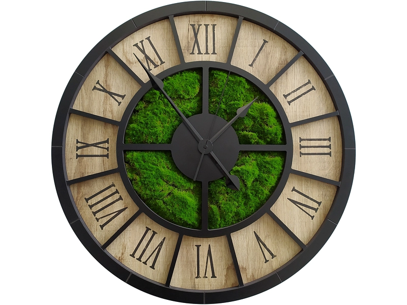 - Auffälliges Design Die markanten römischen Ziffern, eine Kombination aus MDF-Holz und grünem Moos sowie ein kontrastierender schwarzer Rahmen machen diese Uhr zu einem stilvollen Element in rustikalen, Loft- oder modernen Einrichtungen. Es ist nicht nur eine Uhr – es ist eine Wanddekoration mit Charakter
