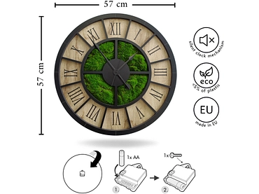 - Zeit im Einklang mit der Natur Diese Uhr vereint Funktionalität mit von der Natur inspirierten Elementen – das Moos in der Mitte des Zifferblatts setzt einen einzigartigen, natürlichen Akzent, der beruhigt und jedem Raum Frische verleiht