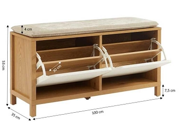 Banc à chaussures BAÏTA KILDA 8 paires 2 portes 2 abattants chêne