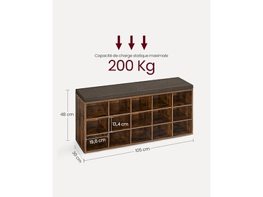 Banc à chaussures SONGMICS BENCH 15 paires brun vintage