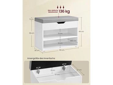 Banc à chaussures SONGMICS BENCH 6 paires blanc