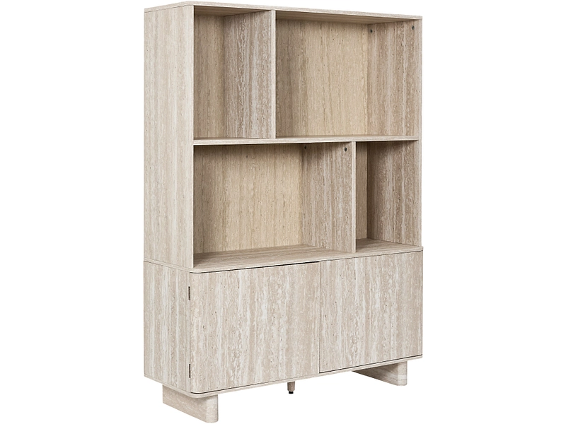 - La Bibliothèque Pietra associe un design effet pierre élégant à une organisation fonctionnelle : ses niches ouvertes mettent en valeur livres et objets décoratifs, tandis que le rangement fermé en partie basse permet de garder un intérieur ordonné, le tout dans un meuble équilibré qui s’intègre facilement dans un salon ou un bureau.