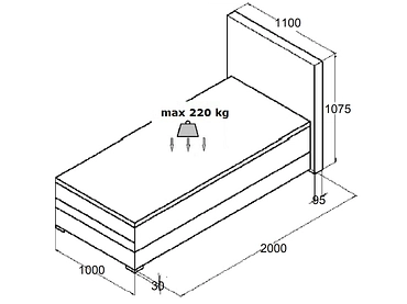 Boxbed LINO gris foncé 100x200cm mi-ferme
