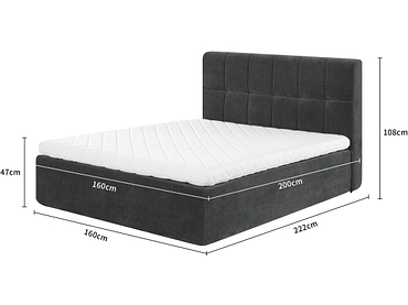 Lit OASIS 160x200cm tissu gris