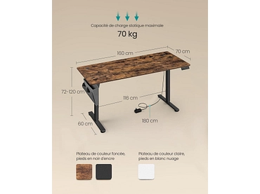 Bureau électrique SONGMICS RUSTIK 70x160x120cm brun vintage