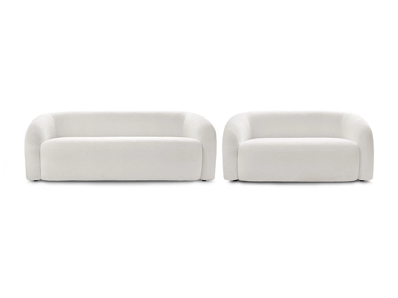 - Le revêtement des canapés est en tissu bouclette agréable au toucher et se décline dans des couleurs douces et apaisantes