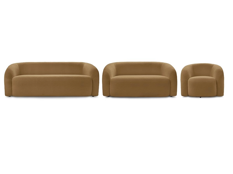 - Le revêtement des canapés est en tissu bouclette agréable au toucher et se décline dans des couleurs douces et apaisantes