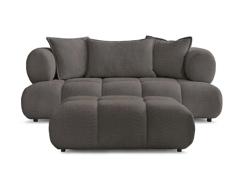 Canapé 2 places avec pouf BOBOCHIC ALYA Tissu bouclette marron