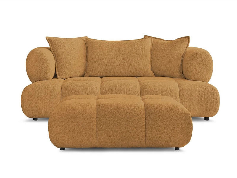 Canapé 2 places avec pouf BOBOCHIC ALYA Tissu bouclette jaune