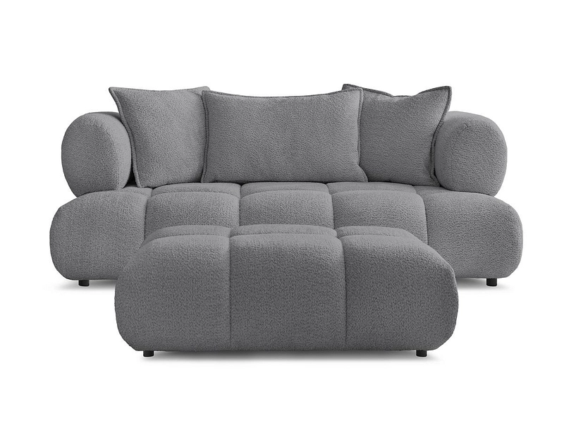 Canapé 2 places avec pouf BOBOCHIC ALYA Tissu bouclette gris foncé