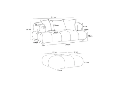 - Le revêtement du canapé est en tissu bouclette avec une finition satinée, facile à nettoyer et déperlant