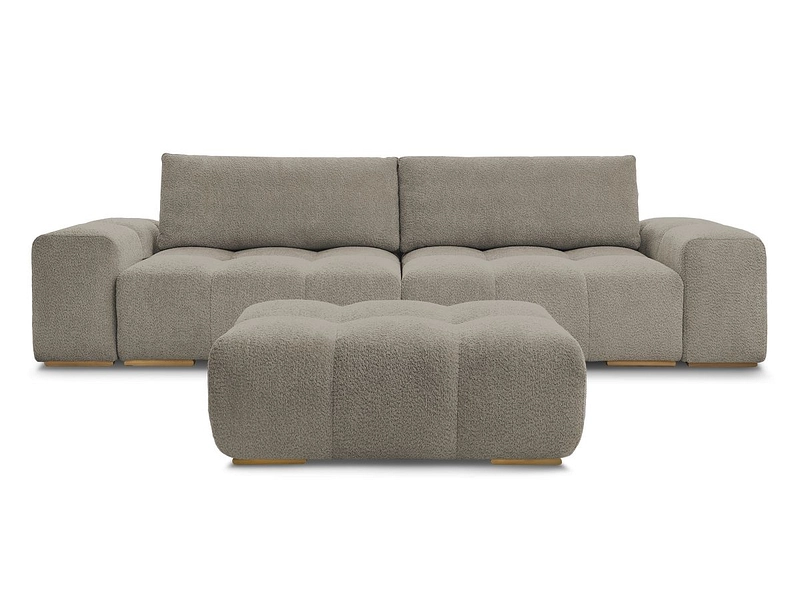 Canapé 3 places avec pouf BOBOCHIC ANAKIN Tissu bouclette taupe