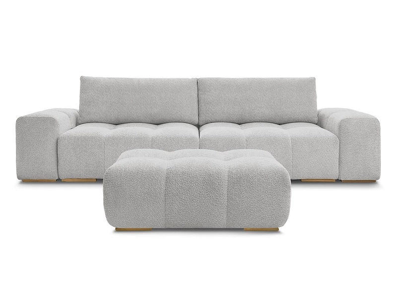 Canapé 3 places avec pouf BOBOCHIC ANAKIN Tissu bouclette gris clair