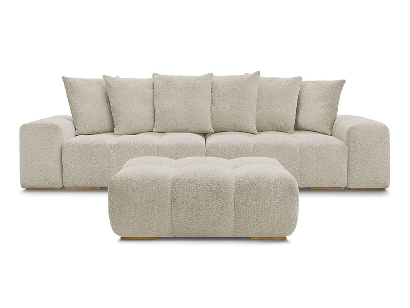 Canapé 3 places avec pouf BOBOCHIC ANAKIN Tissu bouclette beige