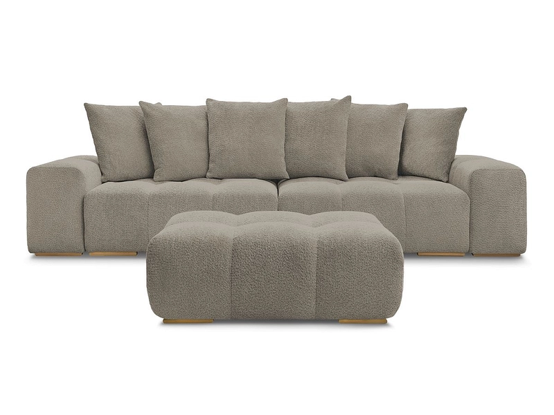 Canapé 3 places avec pouf BOBOCHIC ANAKIN Tissu bouclette taupe