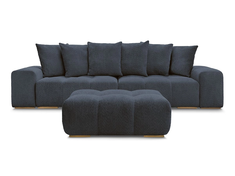 Canapé 3 places avec pouf BOBOCHIC ANAKIN Tissu bouclette bleu foncé