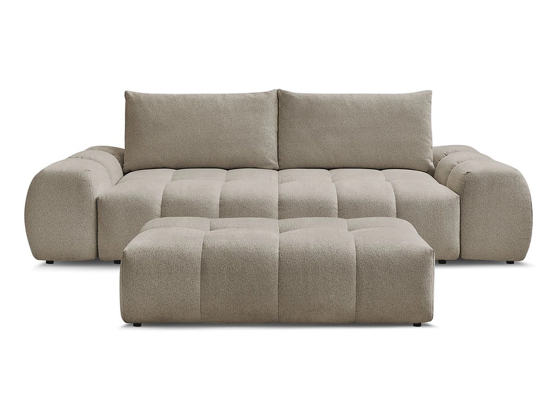 Canapé 3 places avec pouf BOBOCHIC EVEREST Tissu chiné taupe