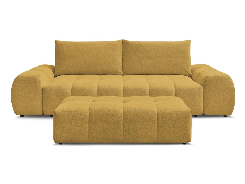 Canapé 3 places avec pouf BOBOCHIC EVEREST Tissu chiné jaune