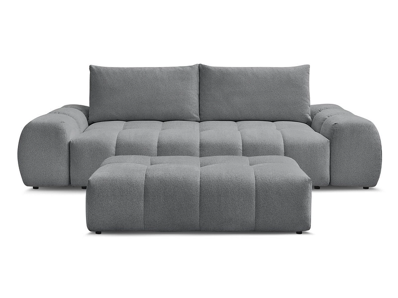 Canapé 3 places avec pouf BOBOCHIC EVEREST Tissu chiné gris foncé