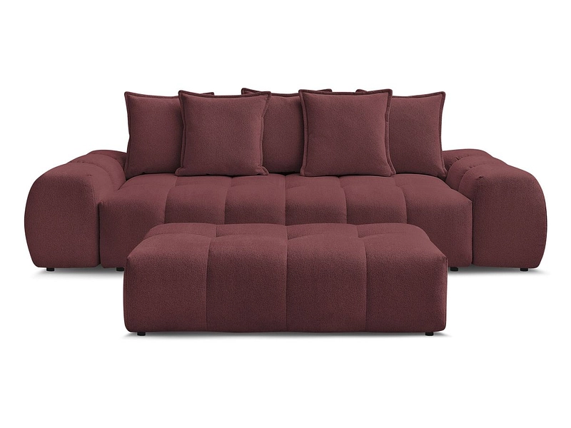 Canapé 3 places avec pouf BOBOCHIC EVEREST Tissu chiné rouge