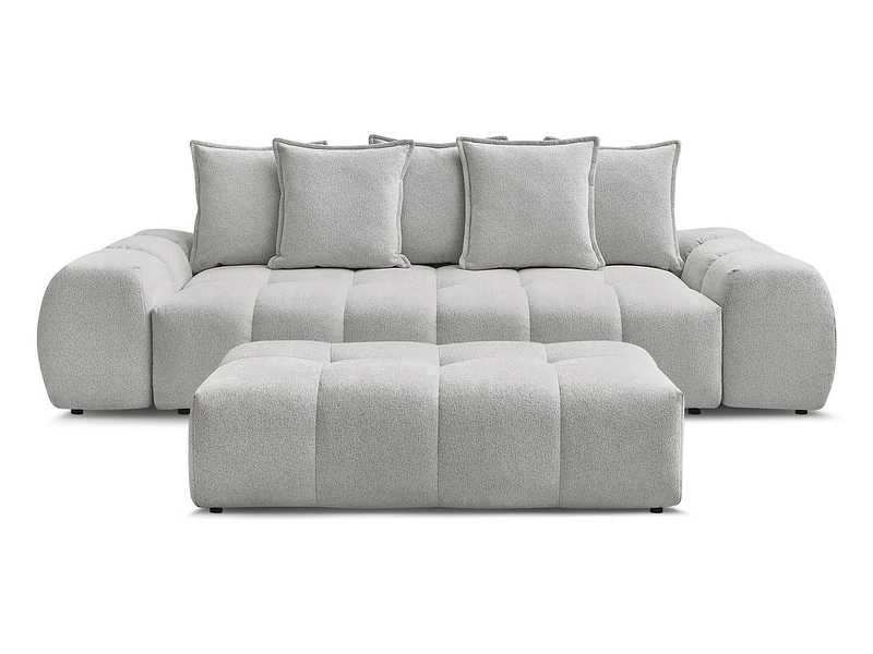 Canapé 3 places avec pouf BOBOCHIC EVEREST Tissu chiné gris clair