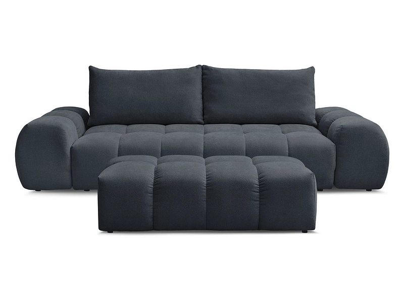 Canapé 3 places avec pouf BOBOCHIC EVEREST Tissu texturé bleu foncé
