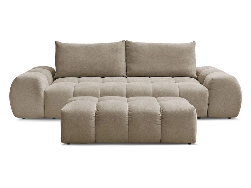 Canapé 3 places avec pouf BOBOCHIC EVEREST Tissu texturé taupe