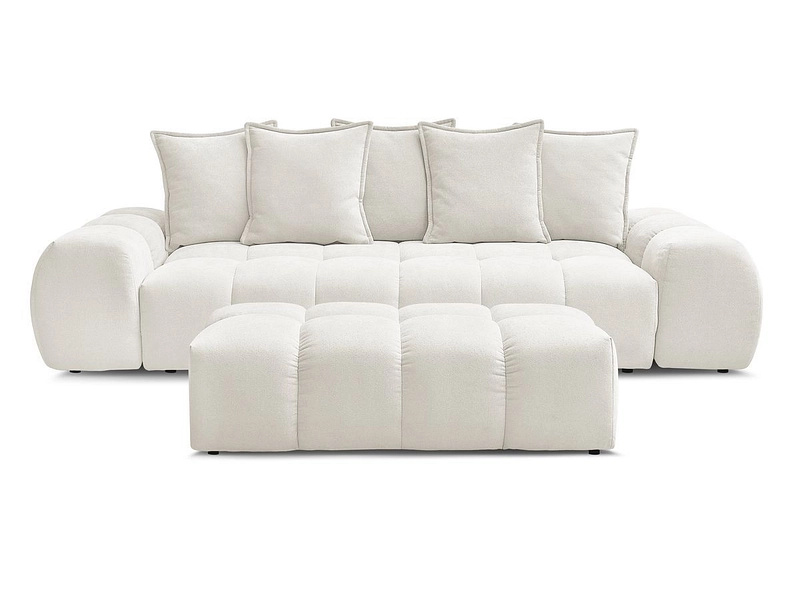 Canapé 3 places avec pouf BOBOCHIC EVEREST Tissu texturé blanc