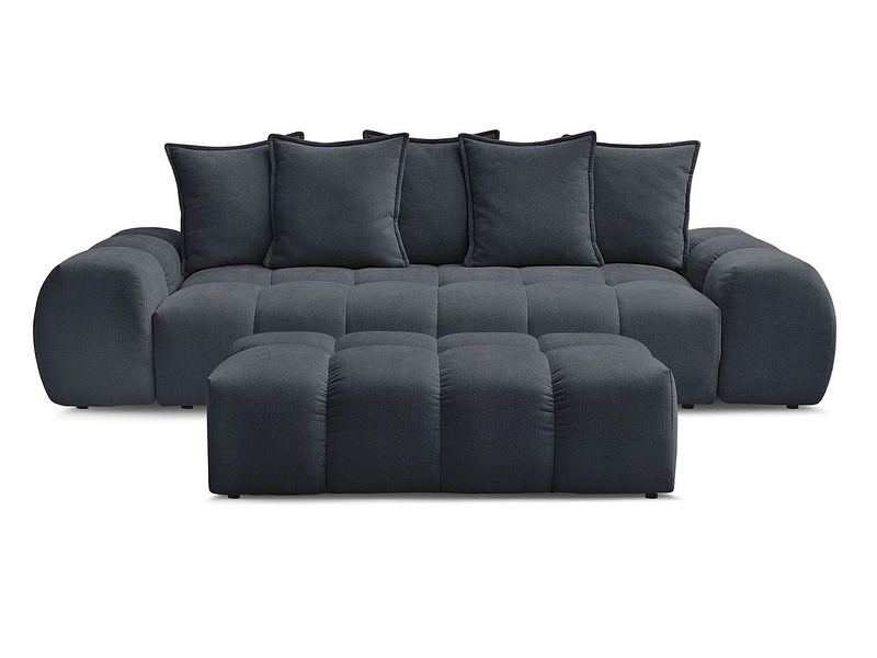 Canapé 3 places avec pouf BOBOCHIC EVEREST Tissu texturé bleu foncé