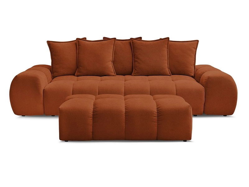 Canapé 3 places avec pouf BOBOCHIC EVEREST Tissu texturé orange