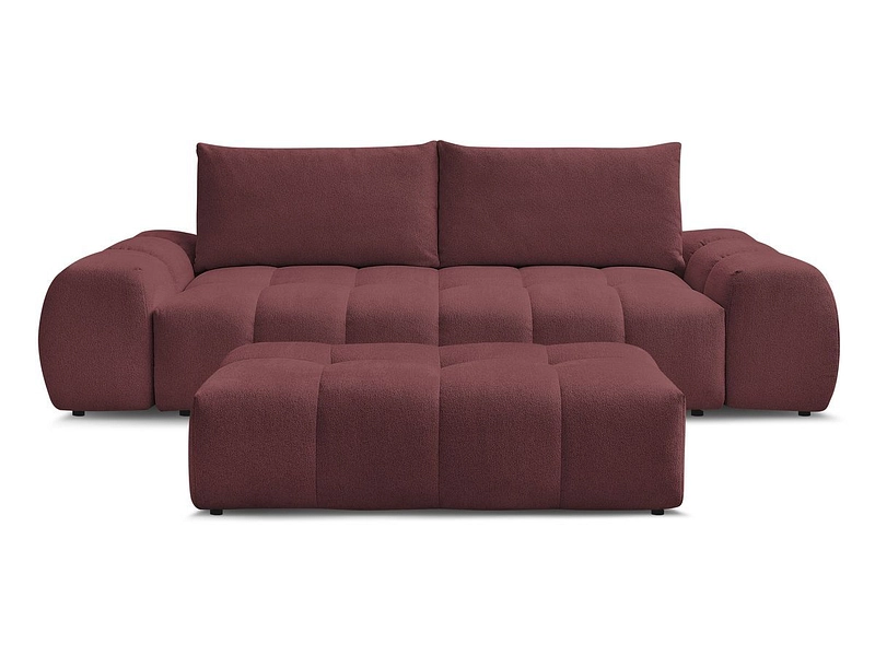 Canapé 3 places avec pouf BOBOCHIC EVEREST Tissu chiné rouge