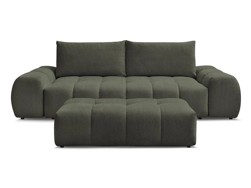 Canapé 3 places avec pouf BOBOCHIC EVEREST Tissu chiné vert