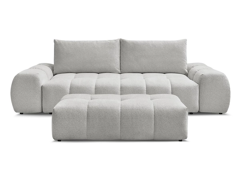 Canapé 3 places avec pouf BOBOCHIC EVEREST Tissu chiné gris clair