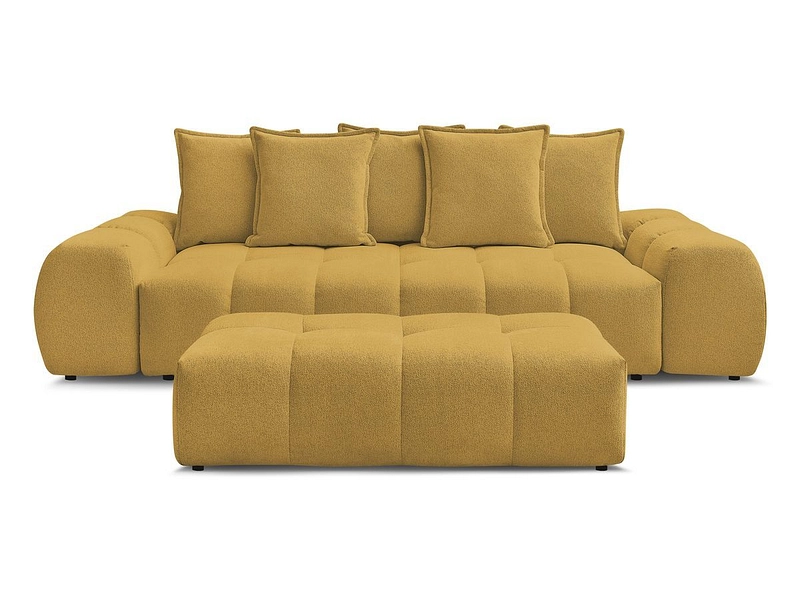 Canapé 3 places avec pouf BOBOCHIC EVEREST Tissu chiné jaune