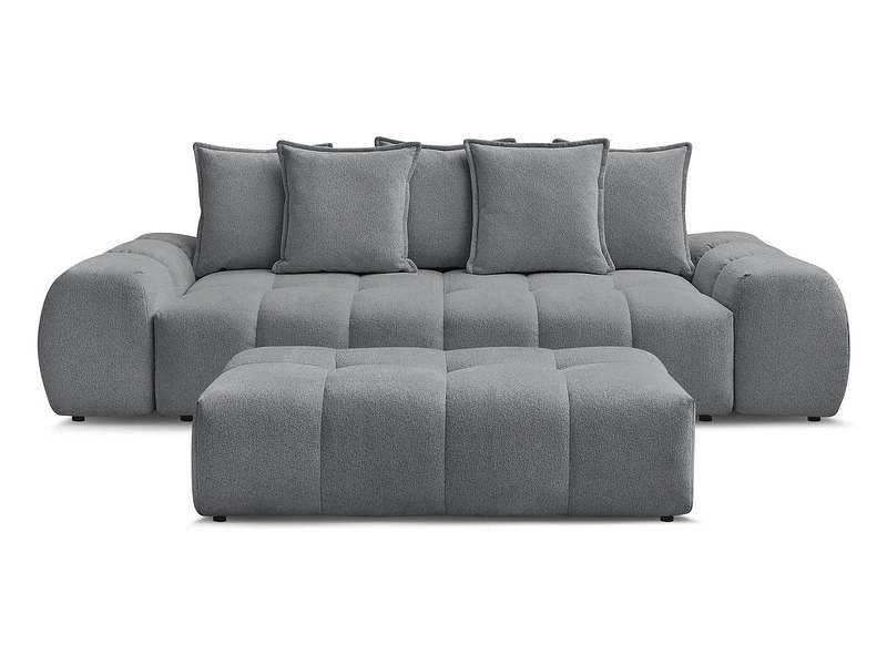 Canapé 3 places avec pouf BOBOCHIC EVEREST Tissu chiné gris foncé