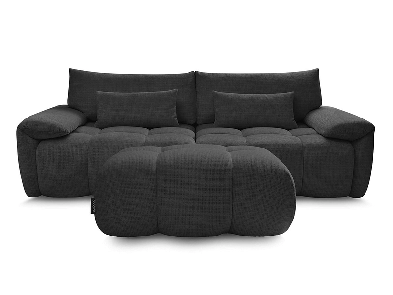 Canapé 3 places avec pouf BOBOCHIC IVANE Tissu texturé noir