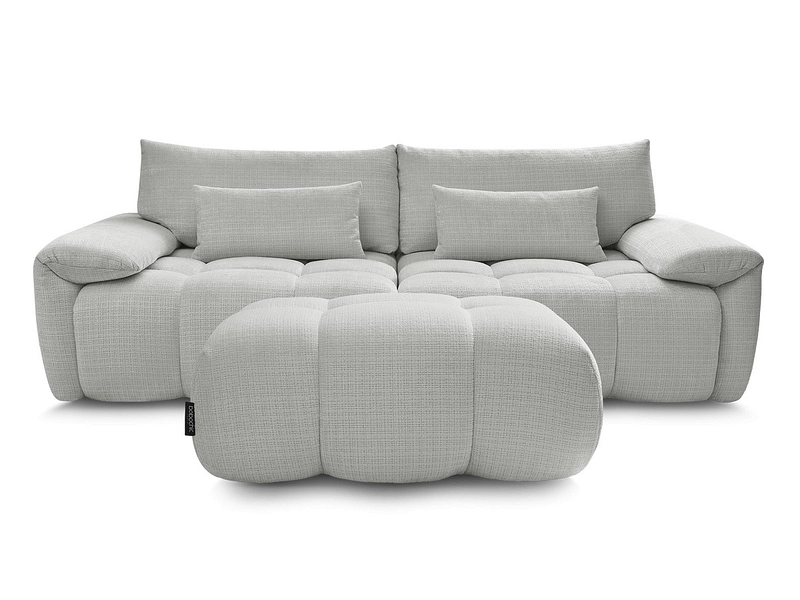 Canapé 3 places avec pouf BOBOCHIC IVANE Tissu texturé gris clair