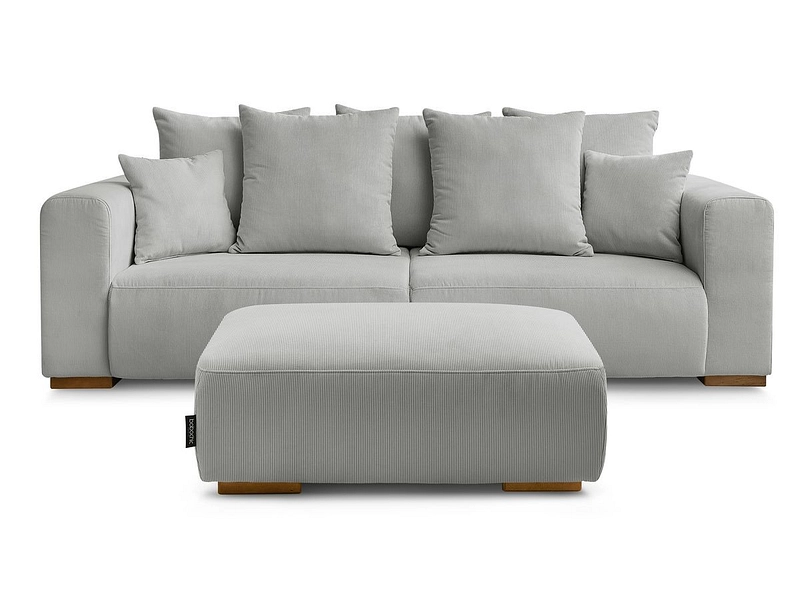 Canapé 3 places avec pouf BOBOCHIC SIDONIE Tissu velours côtelé gris clair