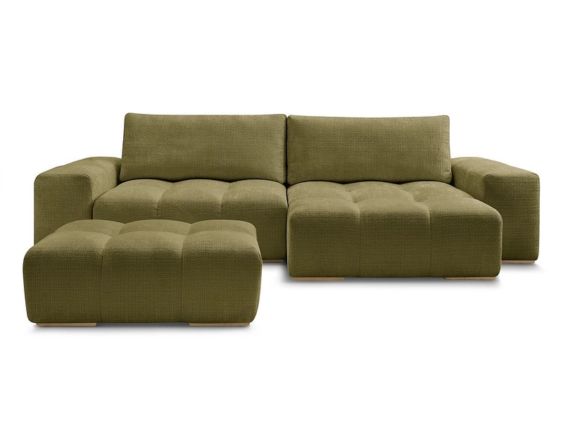Canapé d'angle avec pouf BOBOCHIC ANAKIN Tissu texturé vert